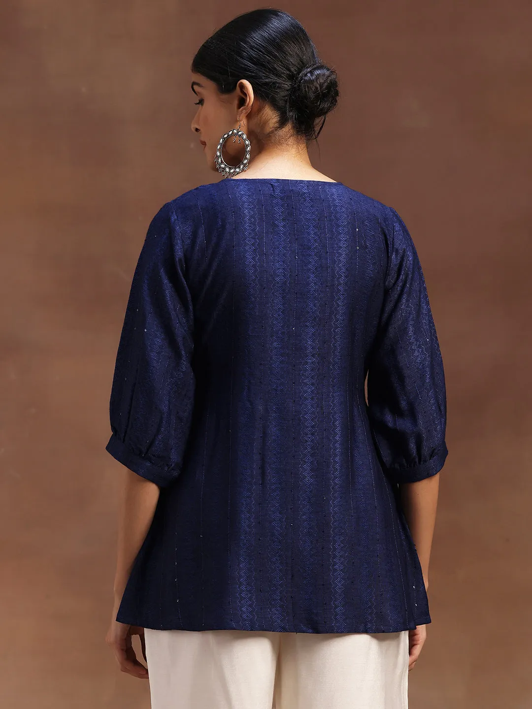 Blue Woven Design Silk Blend A-Line Kurti